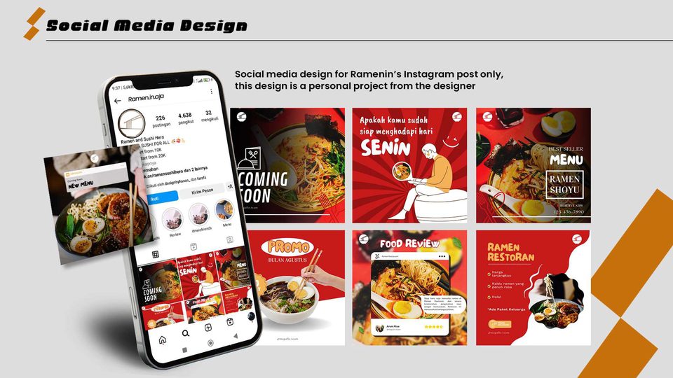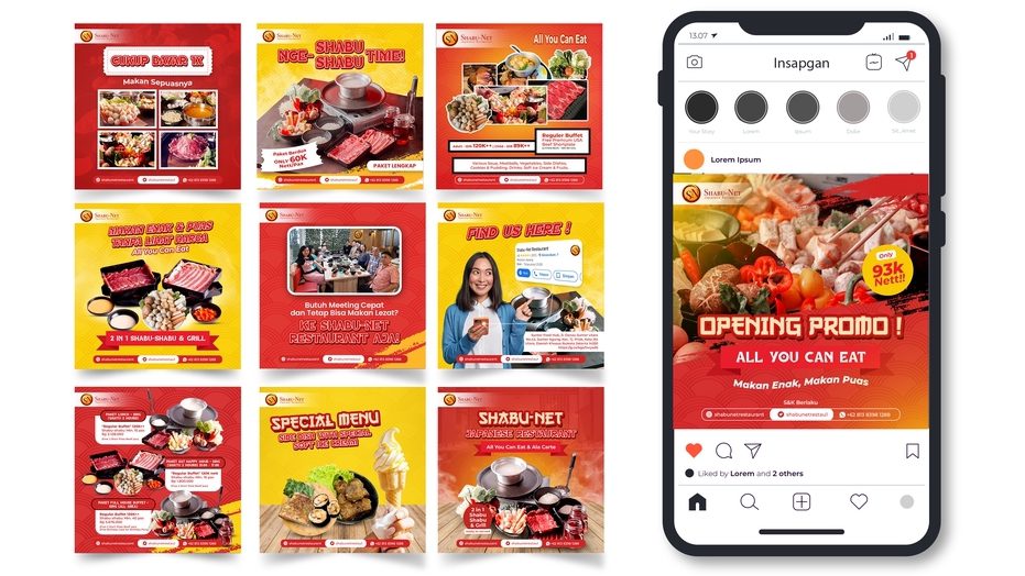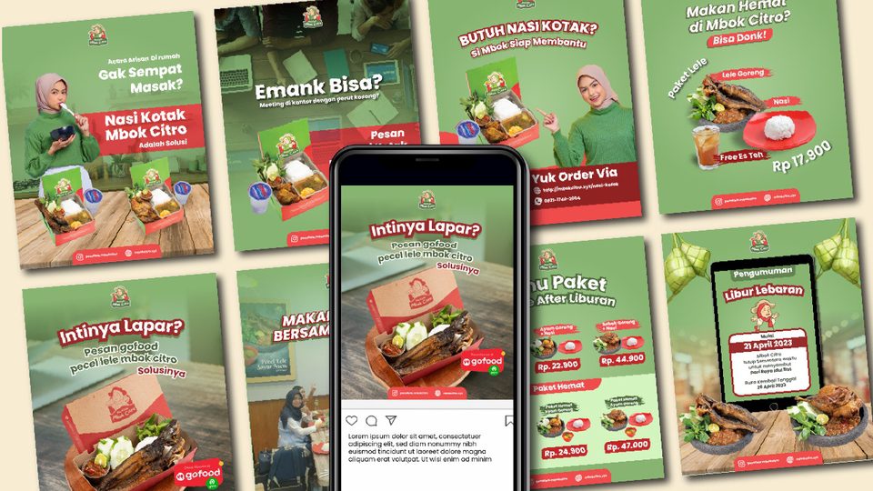 Adstart punya gaya desain modern dan dinamis. Banyak karyanya masuk kategori contoh desain banner makanan untuk konten promo Instagram karena layout-nya rapi dan mudah dibaca di layar ponsel.