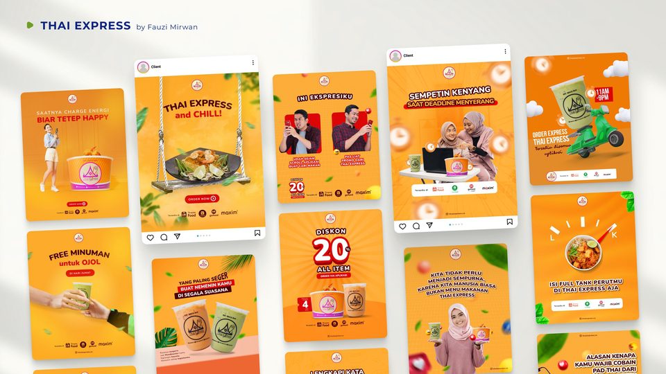 Fauzimirwan punya pendekatan visual storytelling. Setiap desain terasa punya cerita, sehingga cocok dijadikan contoh desain banner makanan untuk brand yang ingin membangun emosi dan kedekatan dengan audiens.