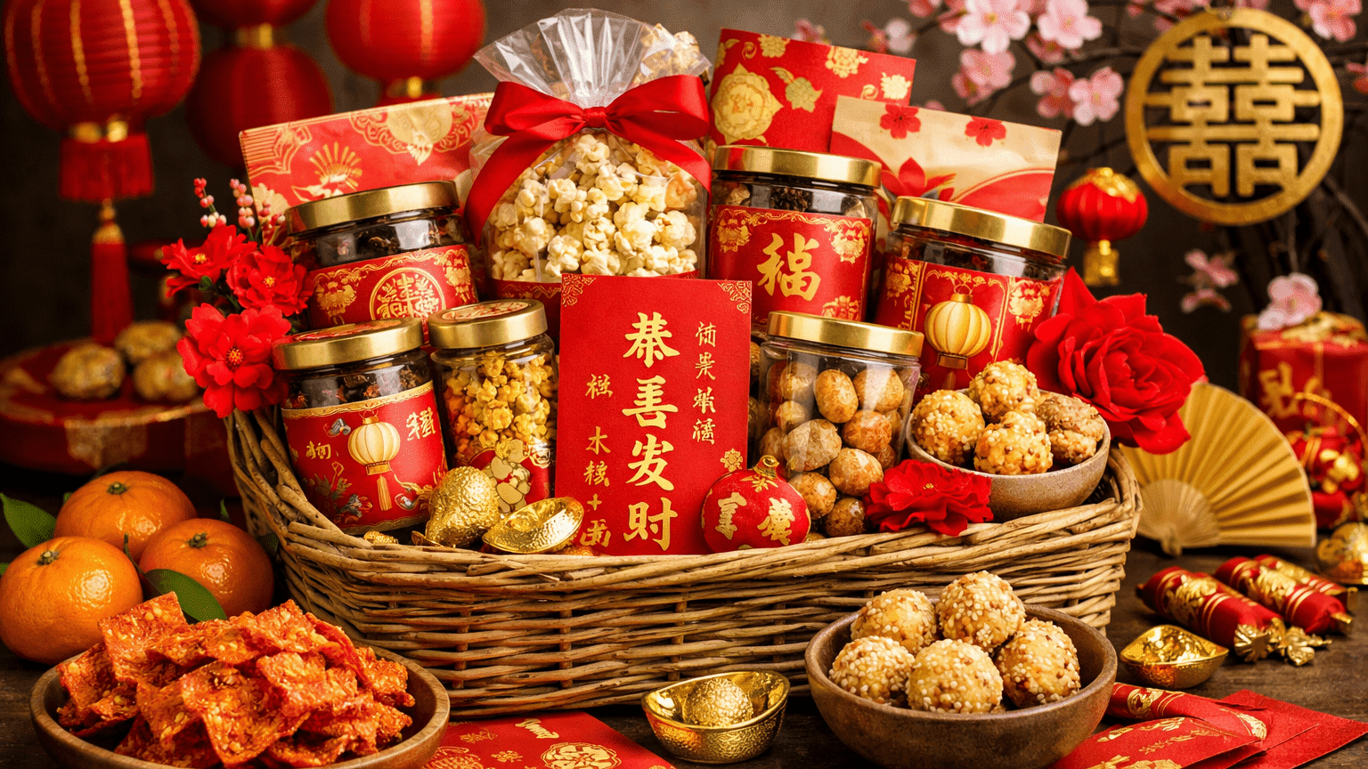 Tak harus selalu tradisional, ide hampers Imlek juga bisa berisi camilan kekinian seperti cookies premium, cokelat artisan, atau granola. Kunci utamanya terletak pada kemasan dengan warna merah, emas, atau motif oriental.